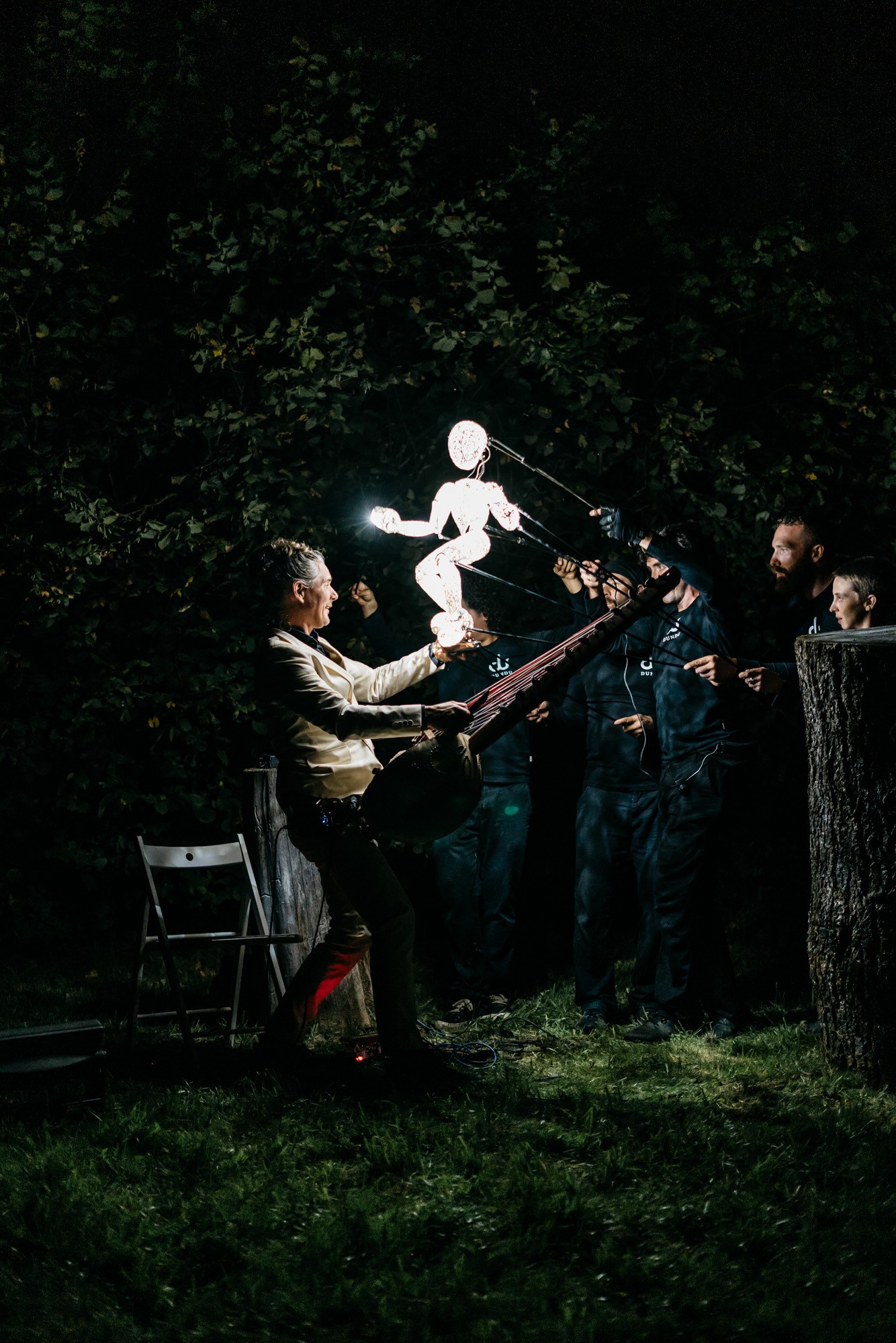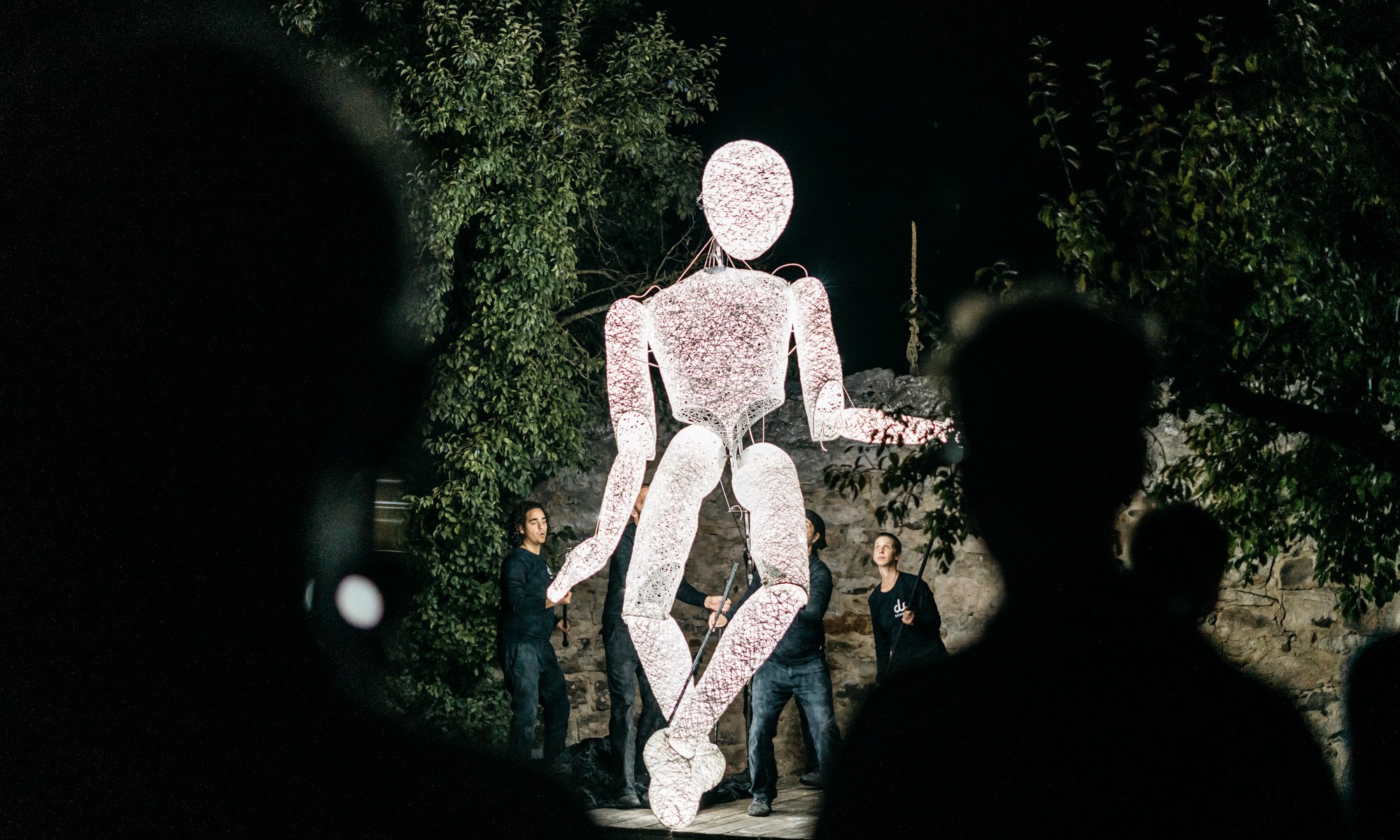 Eine Lichtgestalt, deren Bedeutung erst im Zusammenspiel der Menschen entsteht und einen Freiraum für die eigene Fantasie und Projektionen öffnet. Ein musikalisches, interaktives und faszinierendes Erlebnis, bei dem Puppenspieler in Harmonie mit der Live-Musik einen gemeinsamen Atem finden.