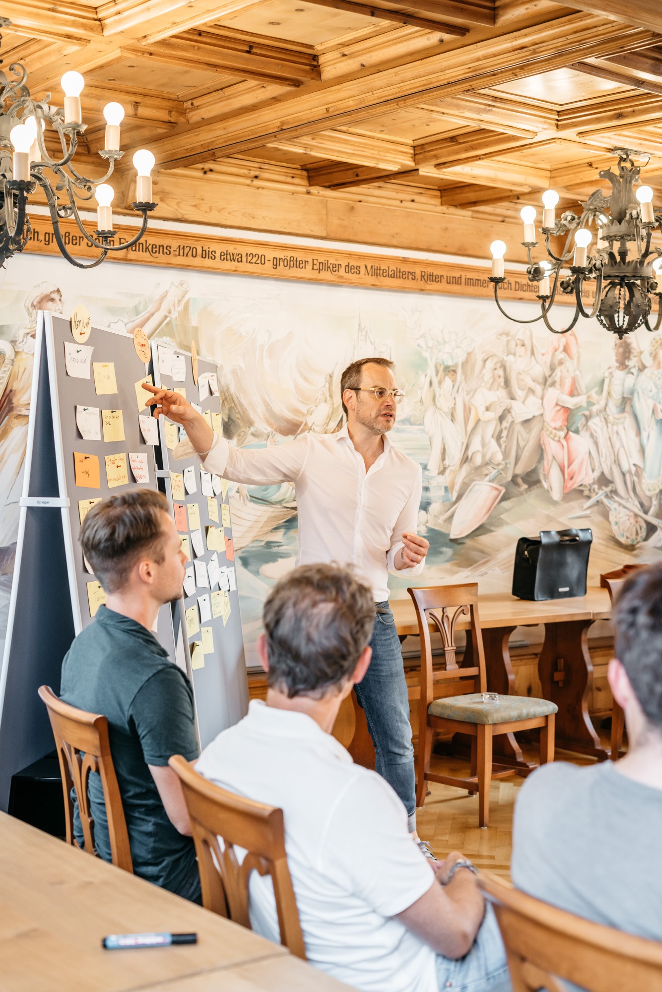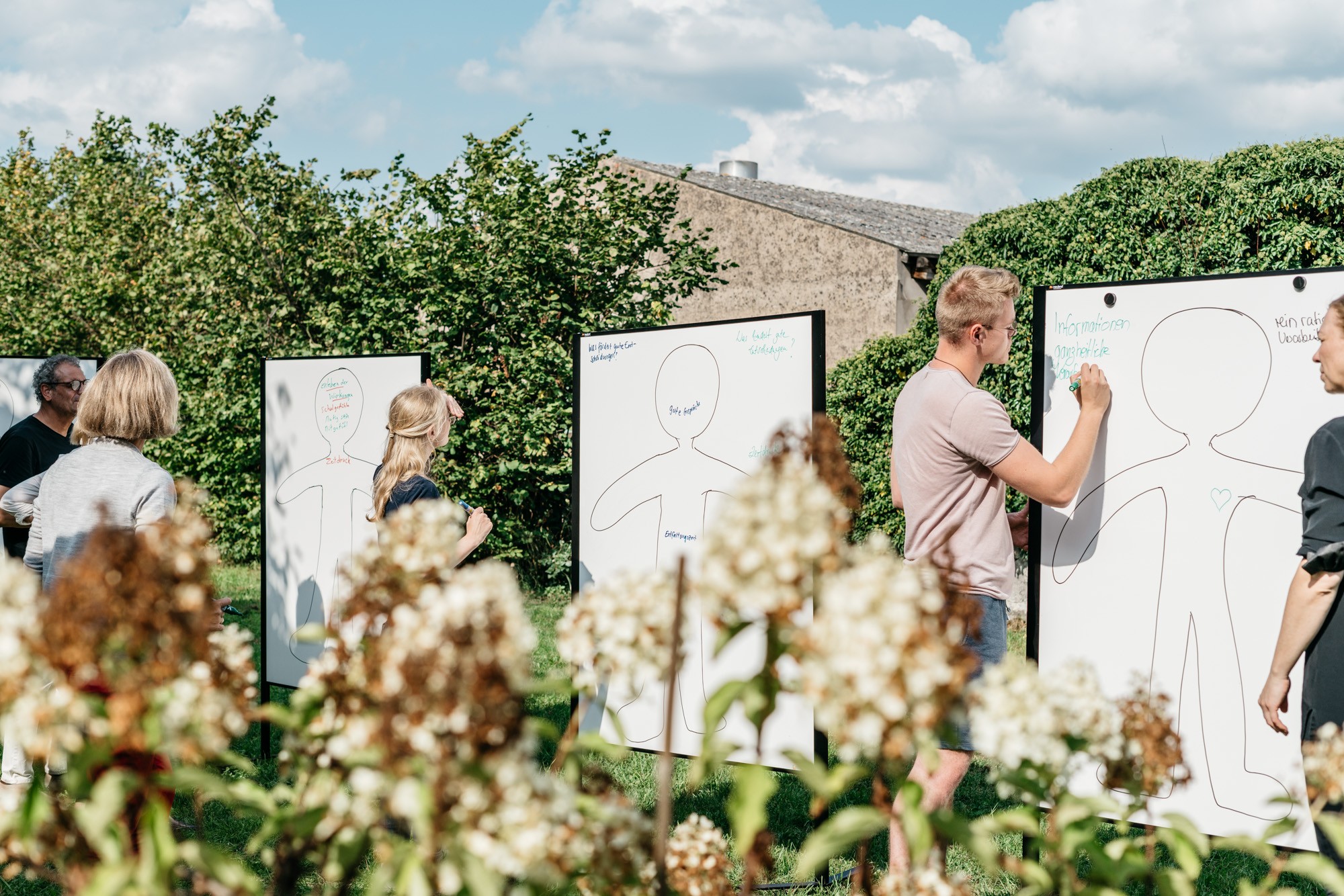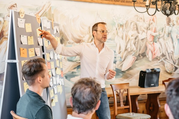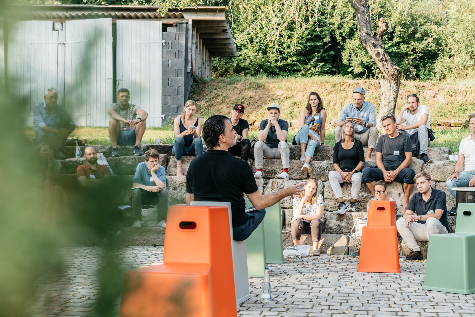 In den Begegnungen zwischen rund 100 Teilnehmerinnen und Teilnehmern wurden neue Wege erkundet, andere Orte ertastet und gemeinsam an den Entwürfen neuer Landkarten gearbeitet, die im neuen Heute Orientierung und Halt(ung) ermöglichen. Es wurden Perspektiven zusammen- und aufgefaltet und an inneren Landkarten orientiert. Umgeben von den spätsommerlichen Sphären in der fränkischen Provinz, lud neben dem inhaltlichen Programm auch die Szenerie dazu ein, Erinnerungen zu teilen und diese von einer neuen Sicht auf die Welt zu einem resonanzvollen Unternehmertum inspirieren zu lassen.