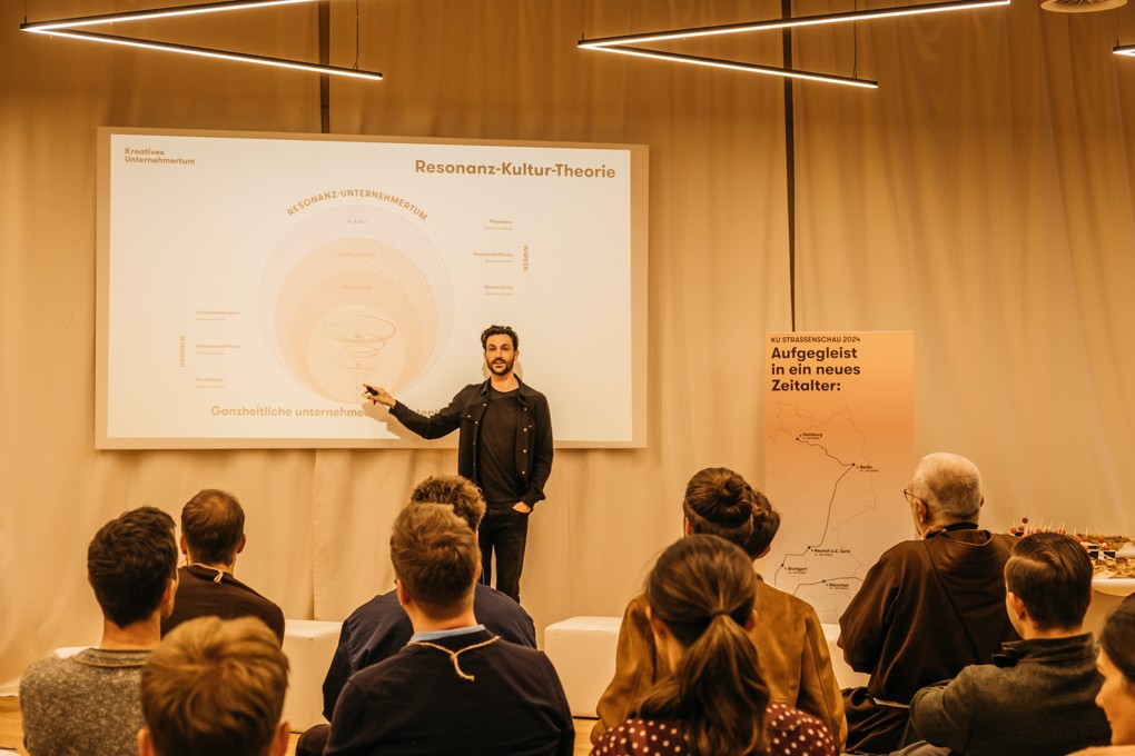 Mit jeder Haltestelle wurden interdisziplinäre Blickwinkel auf die unternehmerische (Mit-)Gestaltung einer lebensdienliche Zukunft gesetzt, um neue Perspektiven für ein zukunftweisendes Unternehmertum, das ganzheitlich, regenerativ und generationendienlich agiert mitzunehmen: Vom Kennenlernen neuer Transformationsdynamiken in der Gestaltung einer nächsten Gesellschaft, über Praxis-Perspektiven für neue, ganzheitliche Wertschöpfungsansätze, bis hin zu einem aktivistischen Blick auf die Rolle von Unternehmertum und die Überwindung von Scheinklimaschutz - der Blick auf ein Resonanz-Unternehmertum war ein vielfältiger und reichhaltiger.