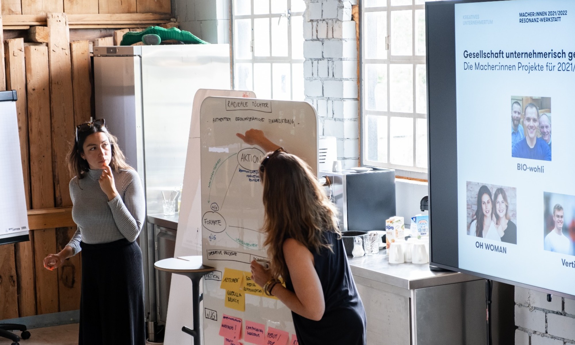 Wir haben drei unserer ehemaligen Macher:innen-Teams eine zentrale Frage des gesellschaftsgestaltenden Unternehmertums gestellt. Die Antworten sind unterschiedlich wie die kreativen Unternehmer:innen selbst und vereinen sich doch durch die zukunftsgewandte Grundhaltung. Drei Teams mit verschiedenen Visionen: Die RADIKALEN TÖCHTER mit politisch-künstlerischem Aktivismus, die Revolution der Sexualkunde durch das Brettspiel von OH WOMAN und nachhaltige Entwicklungshilfe, getrieben durch das innovative, unternehmerische Denken von NIDISI. Und alle drei sprechen über GEMEINSCHAFTLICHKEIT.