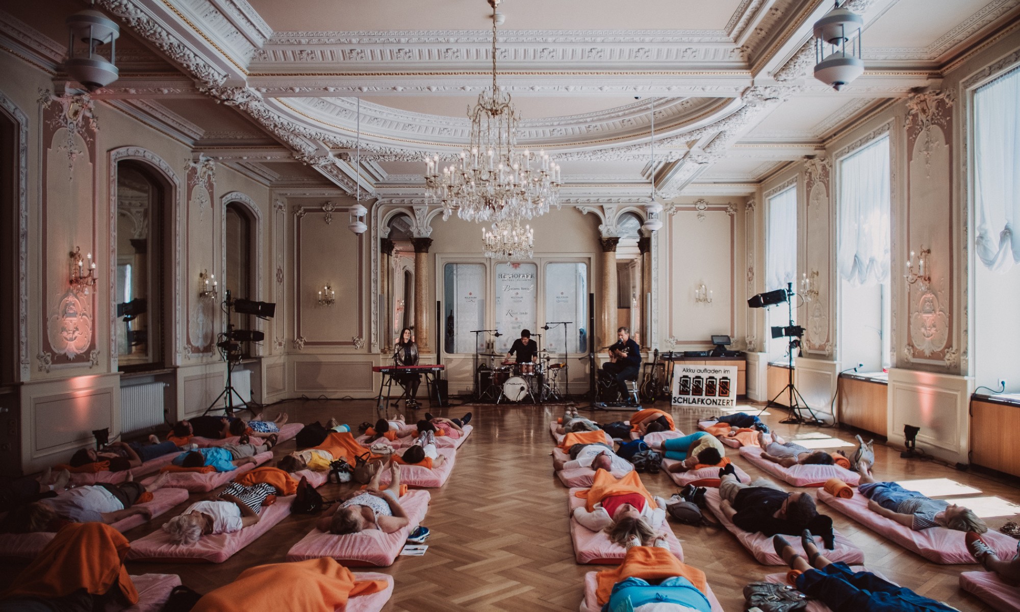 Julia Buch wollte mit ihrer Gründung Menschen die Möglichkeit bieten, wieder wirklich zur Ruhe zu kommen und dem eigenen Schlaf die gebührende Aufmerksamkeit zu widmen – das alles in Begleitung von kuratierter Musik. Gemeinsam mit einem Team aus Musiker:innen und Therapeut:innen baute sie ihre Idee zu einem tourfähigen Konzept aus.