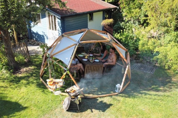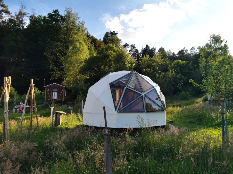 Hierfür hat das visionäre Team, bestehend aus Philipp, Jonas, Leo, Alina und Jaaki einen nachhaltigen, hocheffizienten, modularen Geo-Dome entwickelt, dessen Grundstruktur aus nur einem Dreieck besteht und der nahezu ausschließlich aus regionalen, ökologischen und sortenrein-trennbaren Materialien gebaut wird.